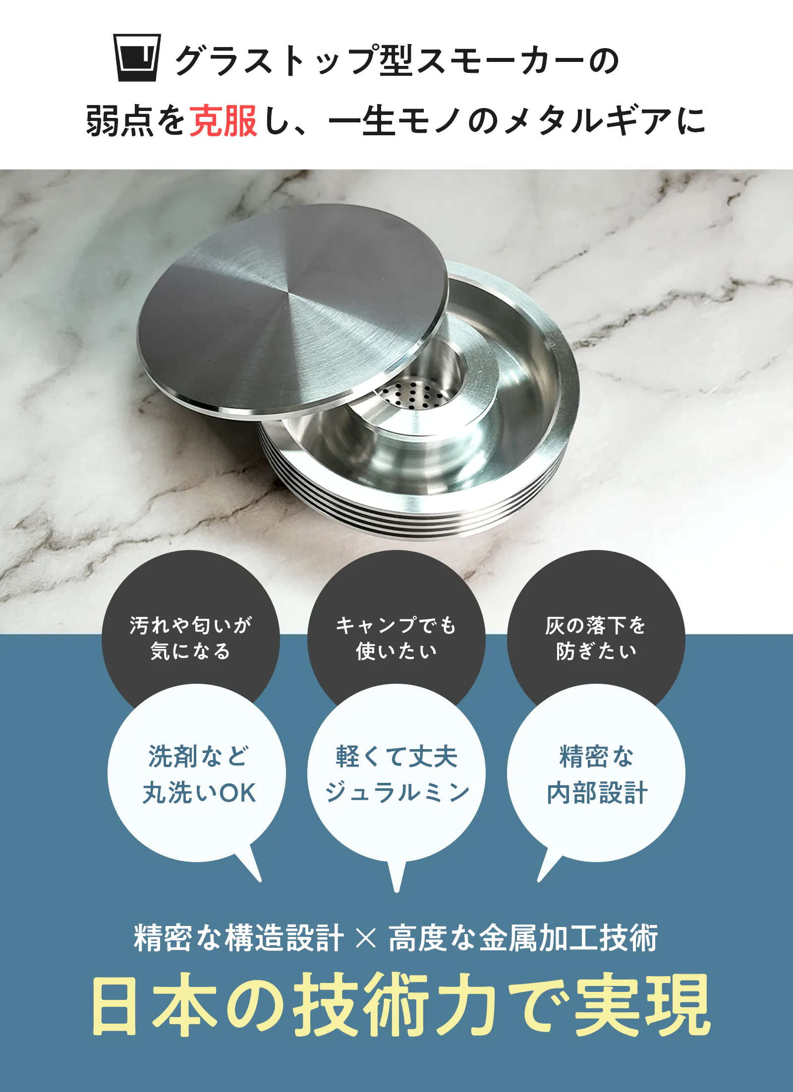 このように、従来品のグラストップ型スモーカーには様々な弱点が存在します。