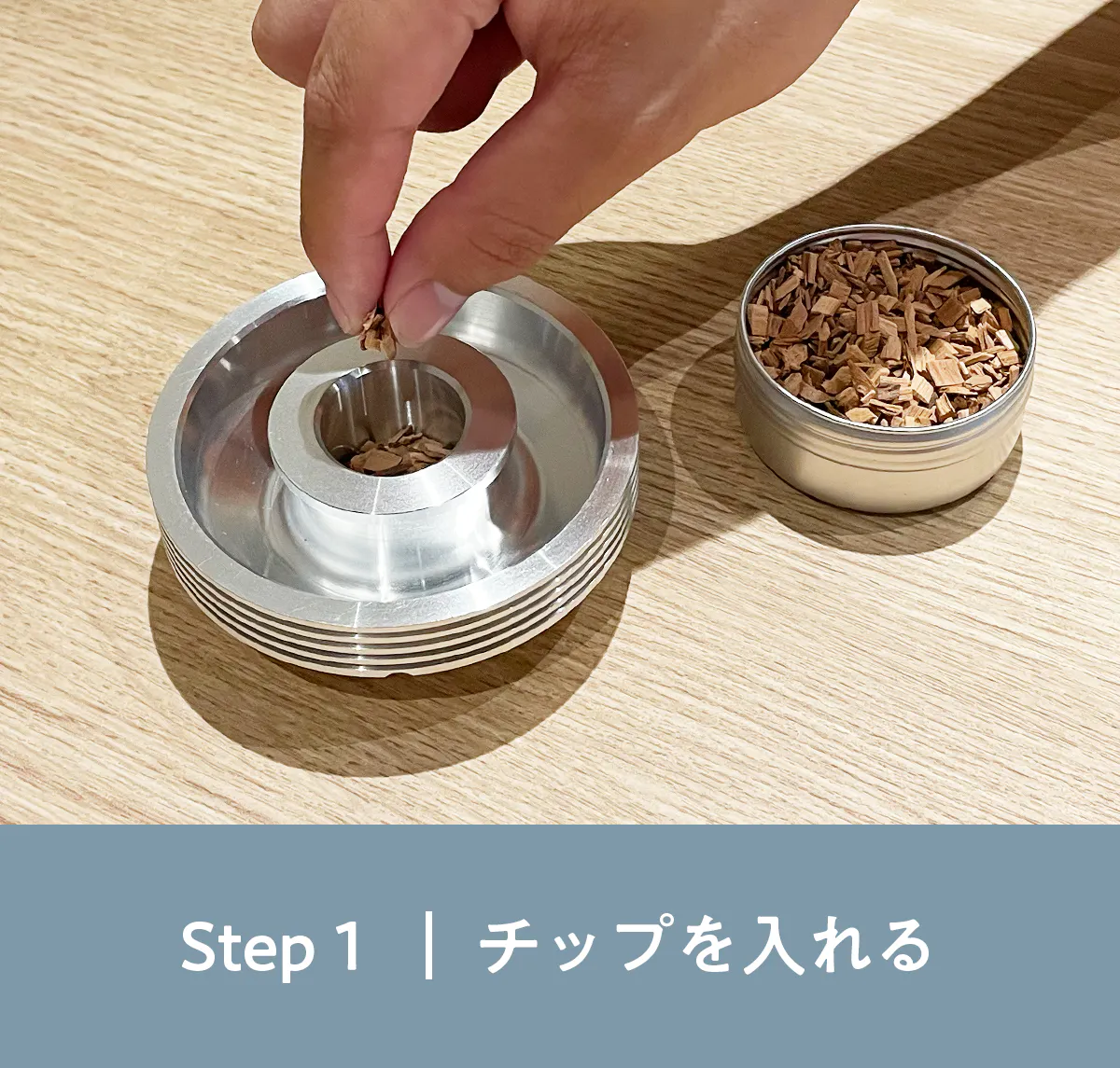 チップは「ひとつまみ〜ふたつまみ」、チップカップ底面の穴がちょうど隠れる程度がオススメです。