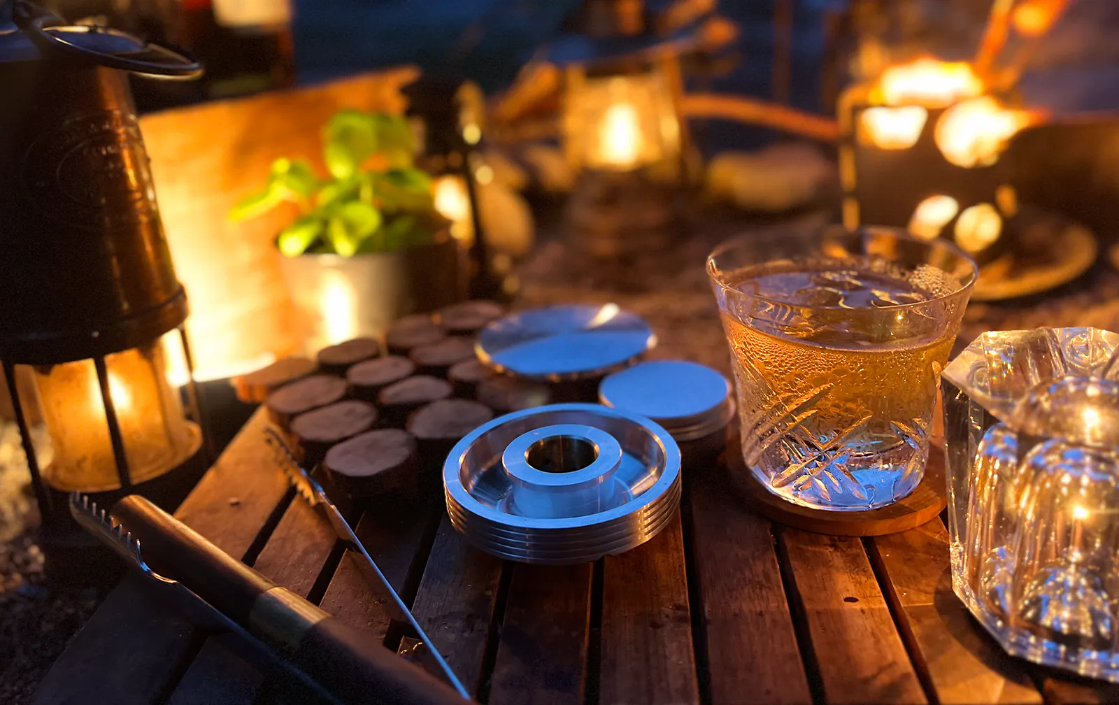 設営に汗を流した後に喉へ流し込む燻製ハイボールが最高です。