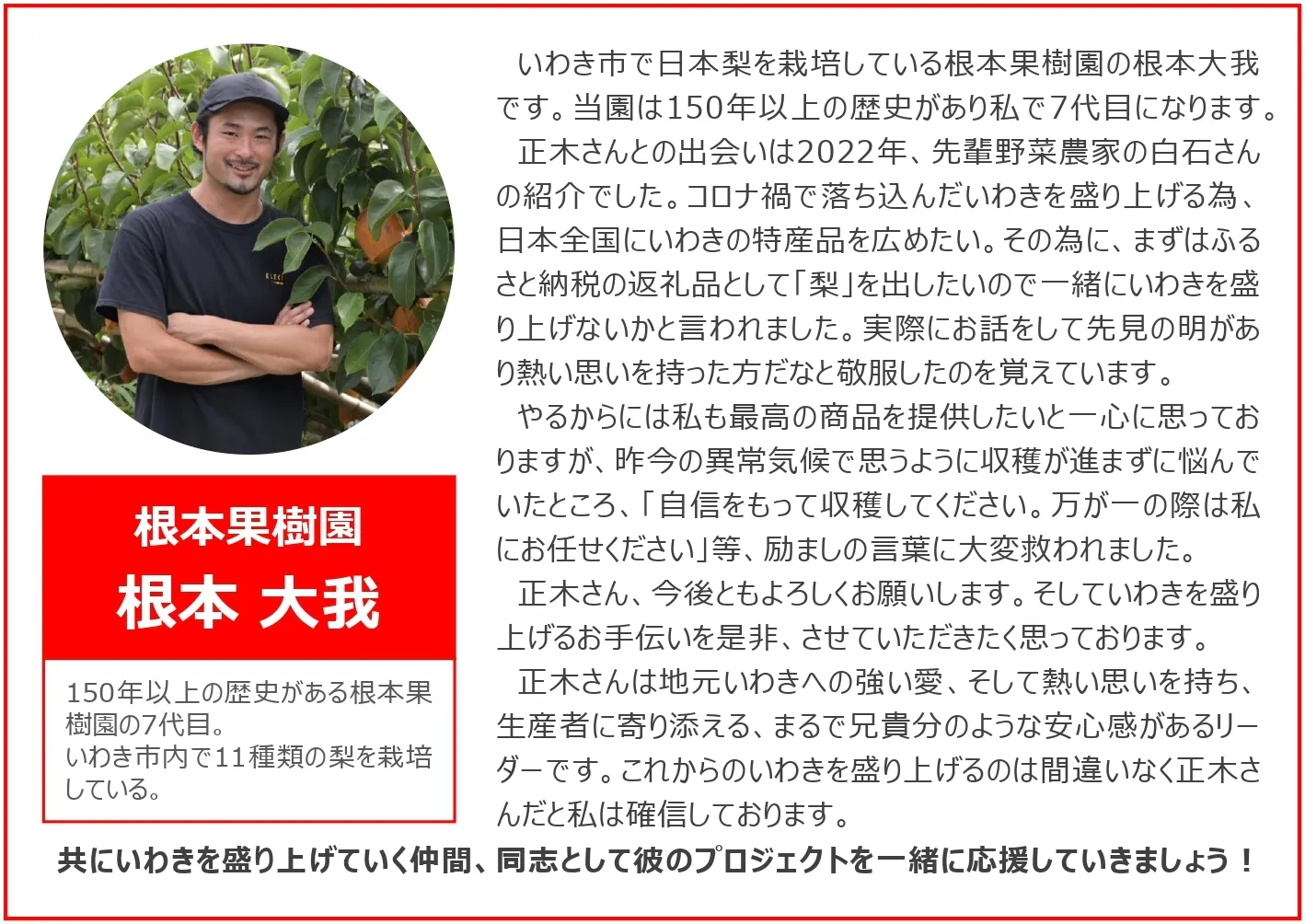 今回のクラウドファンディングを通じて、当社のふるさと納税事業を強化し、いわき市といわき市の魅力ある特産品を全国に発信できるよう全力を尽くしてまいります!皆さまからのご支援、ご協力、どうぞよろしくお願いいたします!