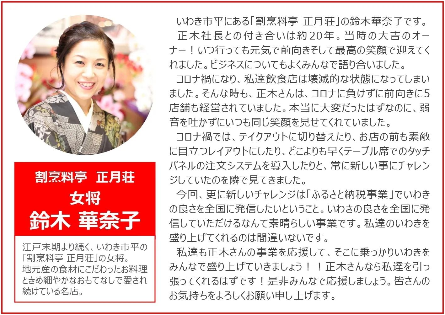 いわき市で飲食店を経営している(株)ありがとうカンパニーの正木聡です。