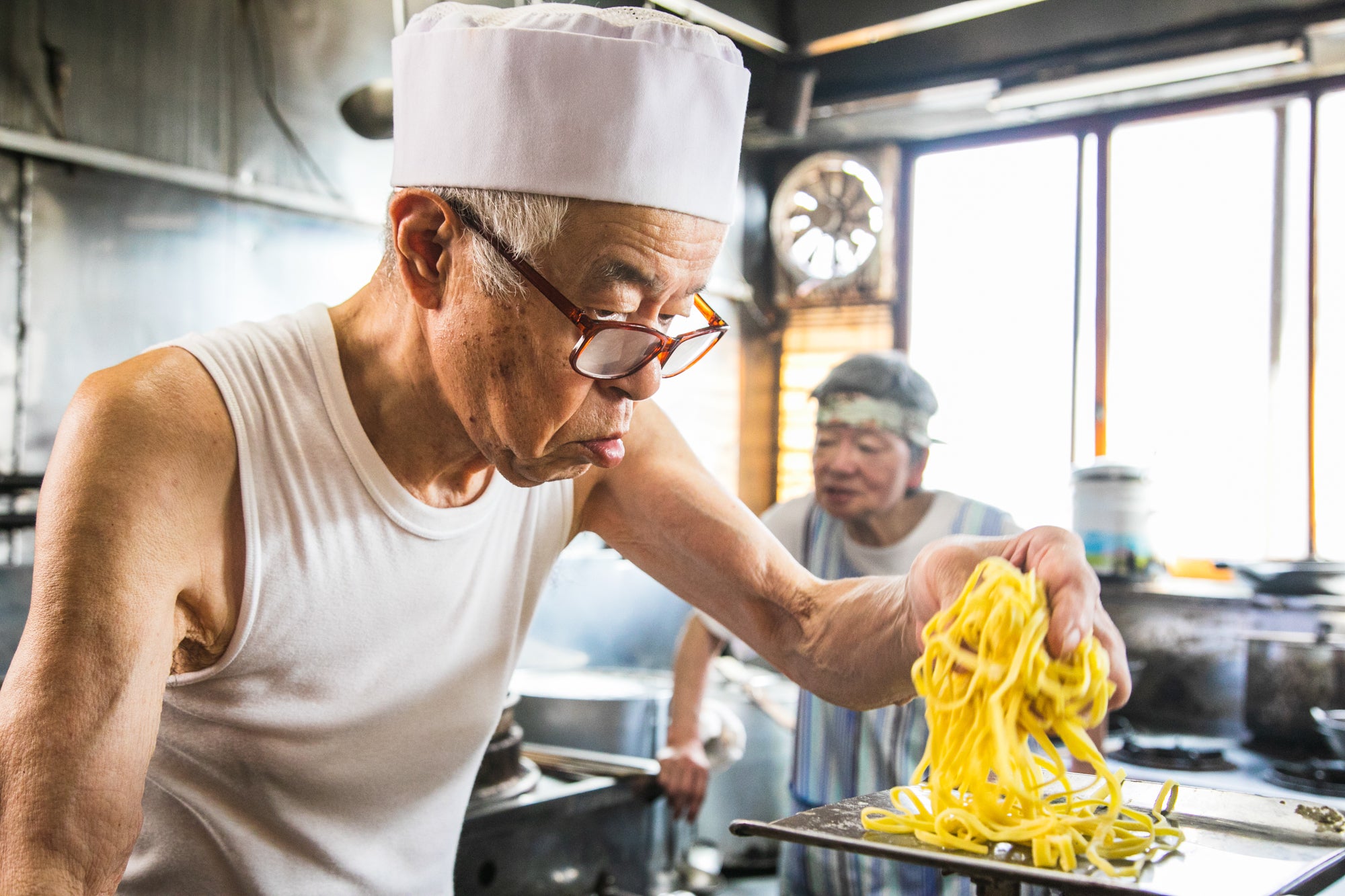 仕込みは毎朝7時からはじまります。ひたすら麺を切る作業動画をInstagramにアップしたところ、26万回以上も再生されました。ただただ均一に麺を切り続ける動画ですが、高齢で働く店主と女将の姿は世界各国でたくさんの方の活力となっていると感じました。ちなみに、店主が腱鞘炎の痛みをこらえて焼きそばを炒める動画は83万回も再生されました。