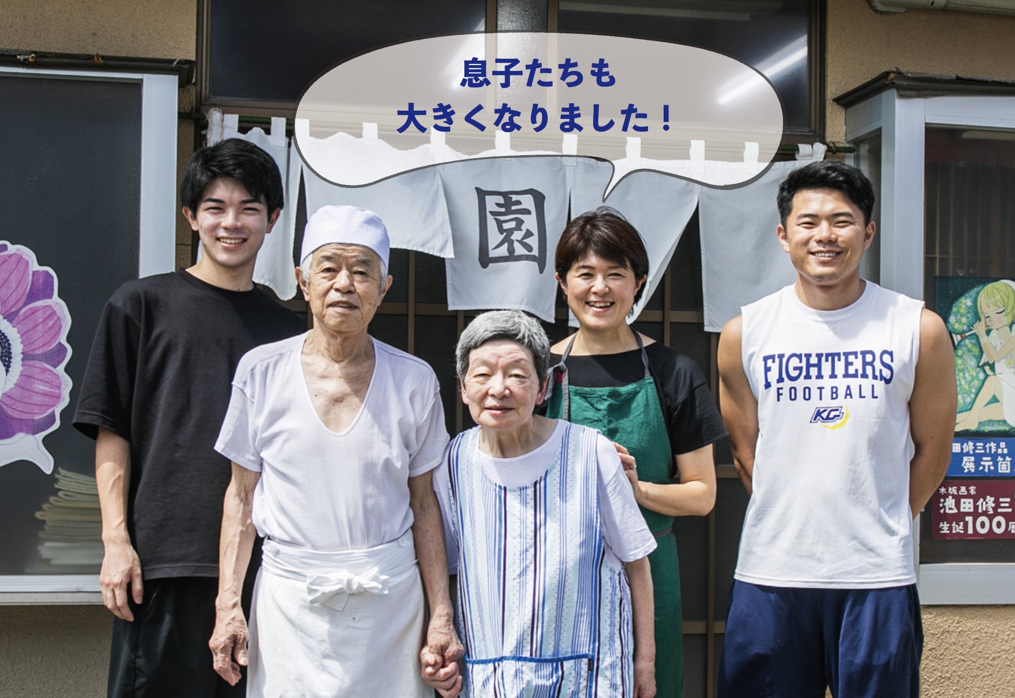 数年後、専門的な中華料理より街中華で庶民の舌を喜ばせたいと思い、生まれ育った秋田県の象潟町に帰郷。1964年、亡くなった祖母と店主(父)と女将(母)が園食堂を創業しました。