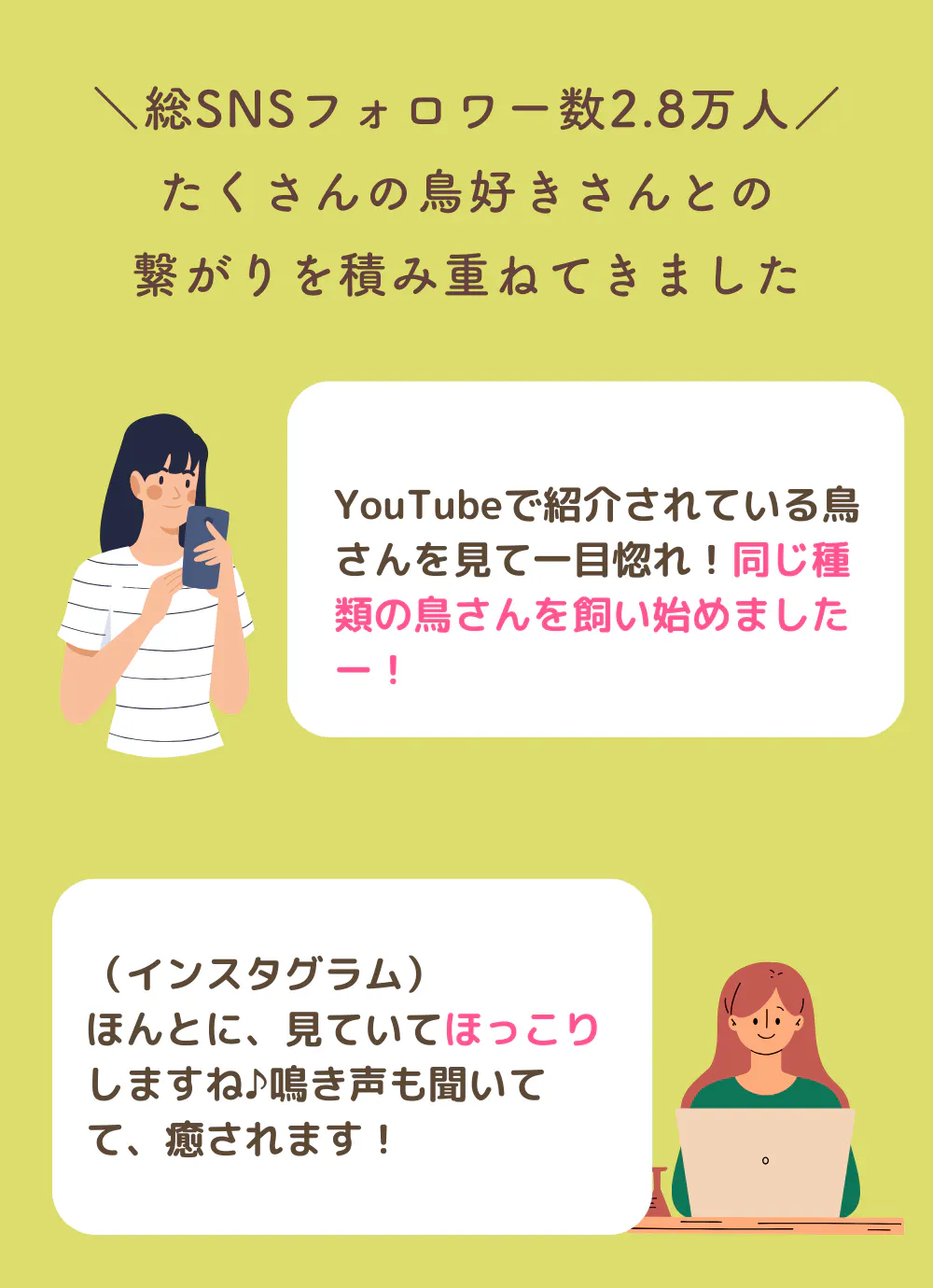 この間、経営ノウハウを培いながら「鳥好きさんの方とつながること」をコツコツと続けてきました。このたび、「リニューアル」という形を取りますが、初心の想いを大切にしたまま、お客様や関わっていただけるクリエイター様・企業様に喜んでもらえるようにお店を経営していきます。