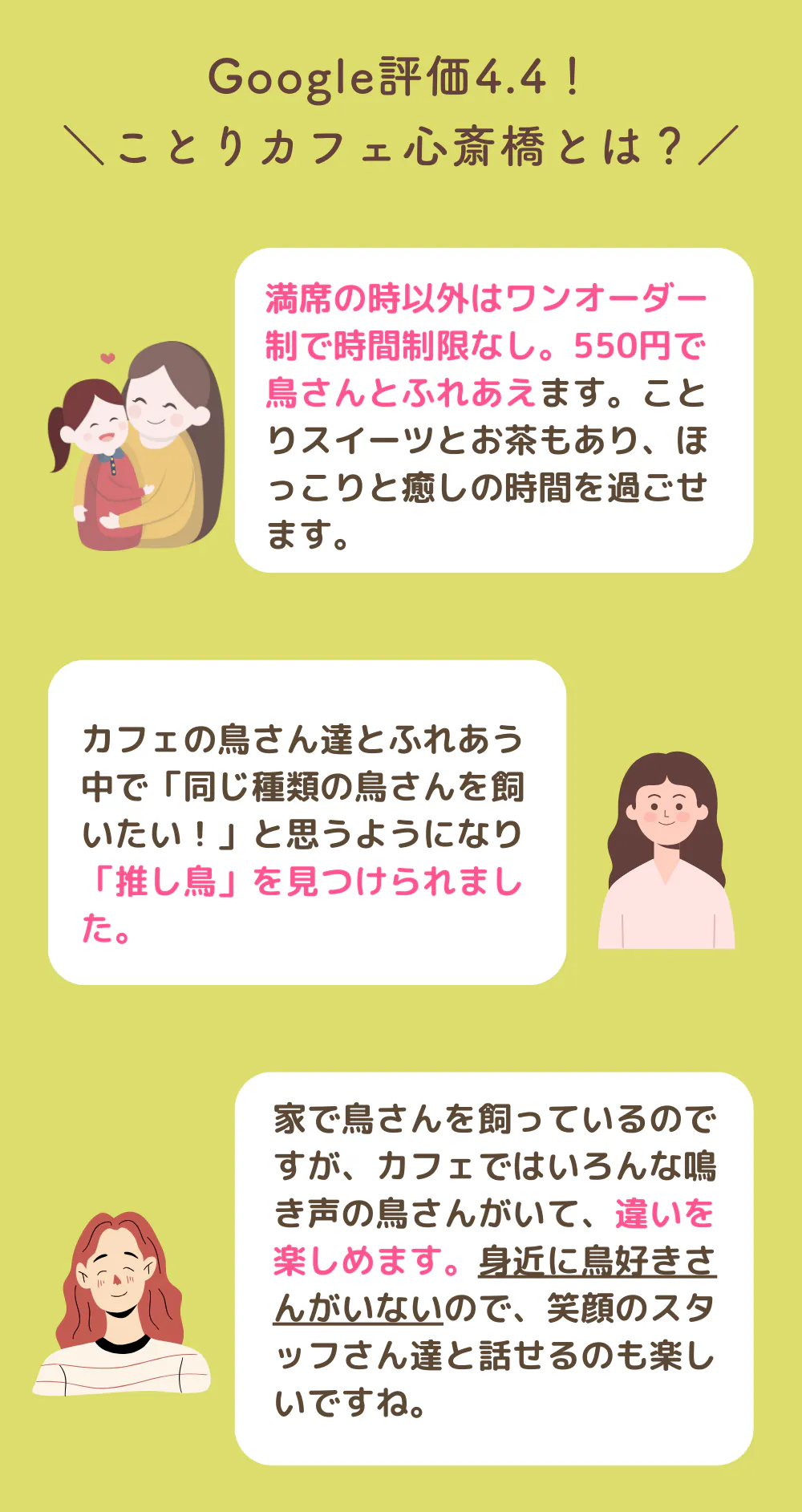 はじめまして!「ことりカフェ心斎橋」と申します。