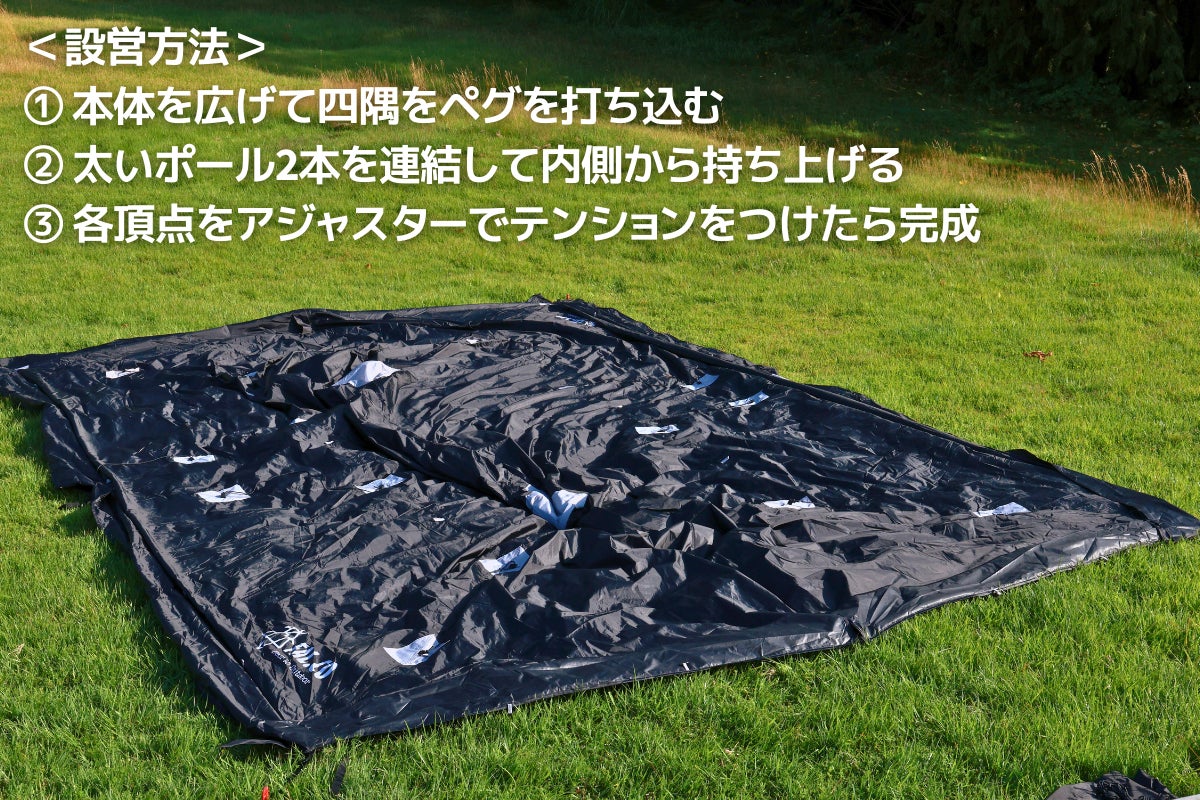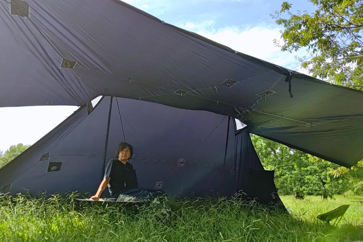 ブランド立ち上げから2年。様々なテントを試用してきた私たちが、一目置かれるブラックキャンパー&グループキャンパー向け製品を目指して試作を繰り返して、満足度の高い「タープにもなる大型シェルターテント」が完成しました!