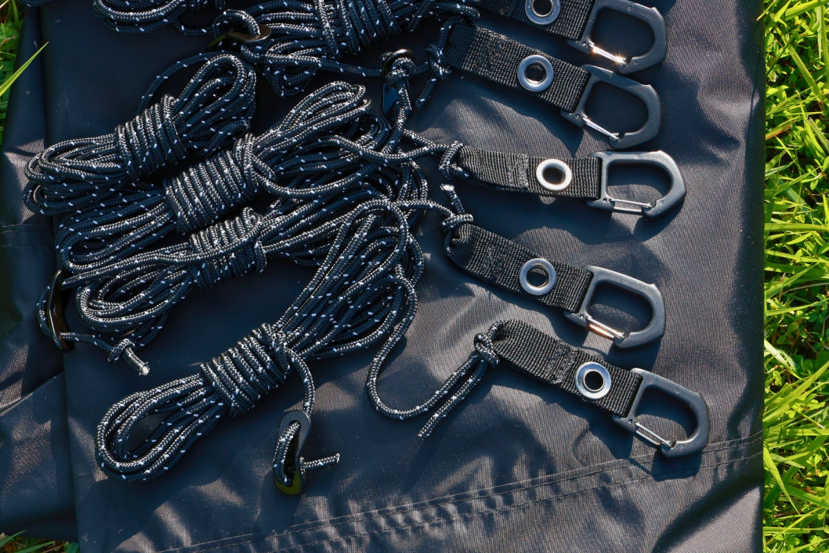 本商品には、テントを固定する「カラビナ付きの専用拡張ロープ」が8本付属しています。