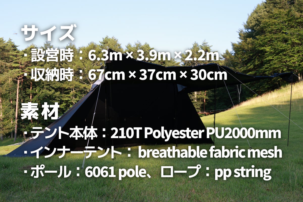 設営時が「 6.3m × 3.9m × 2.2m 」です。