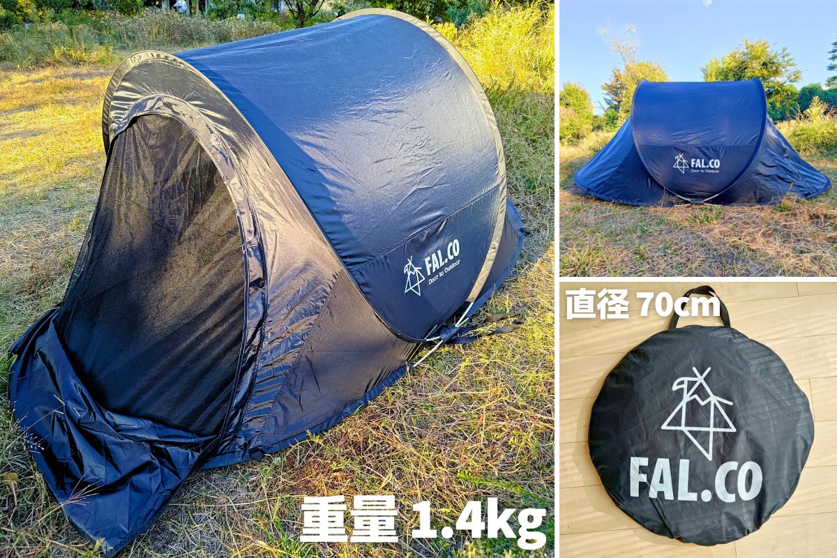 今回は大型シェルターテントだけでなく、一人用のポップアップテント「 FALCON POP 」も先行販売します!