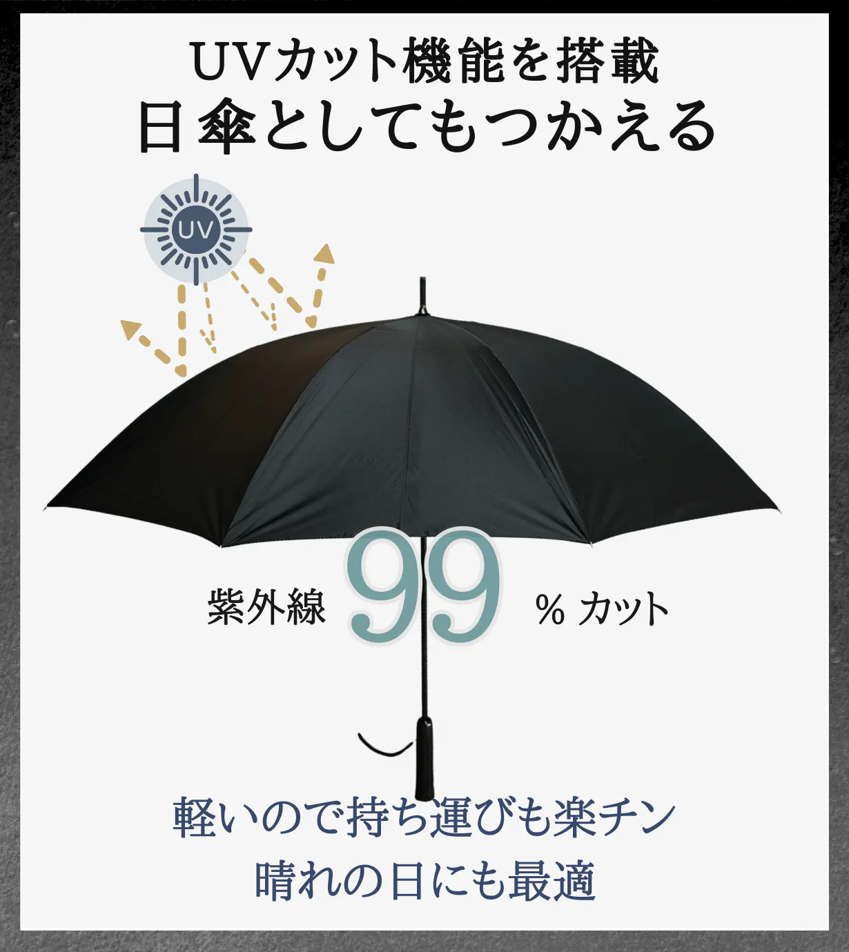 『全ての季節をあなたと共に歩む傘』をコンセプトにしているため、日傘としても使えるようにUVカット機能がある傘布を採用しています。