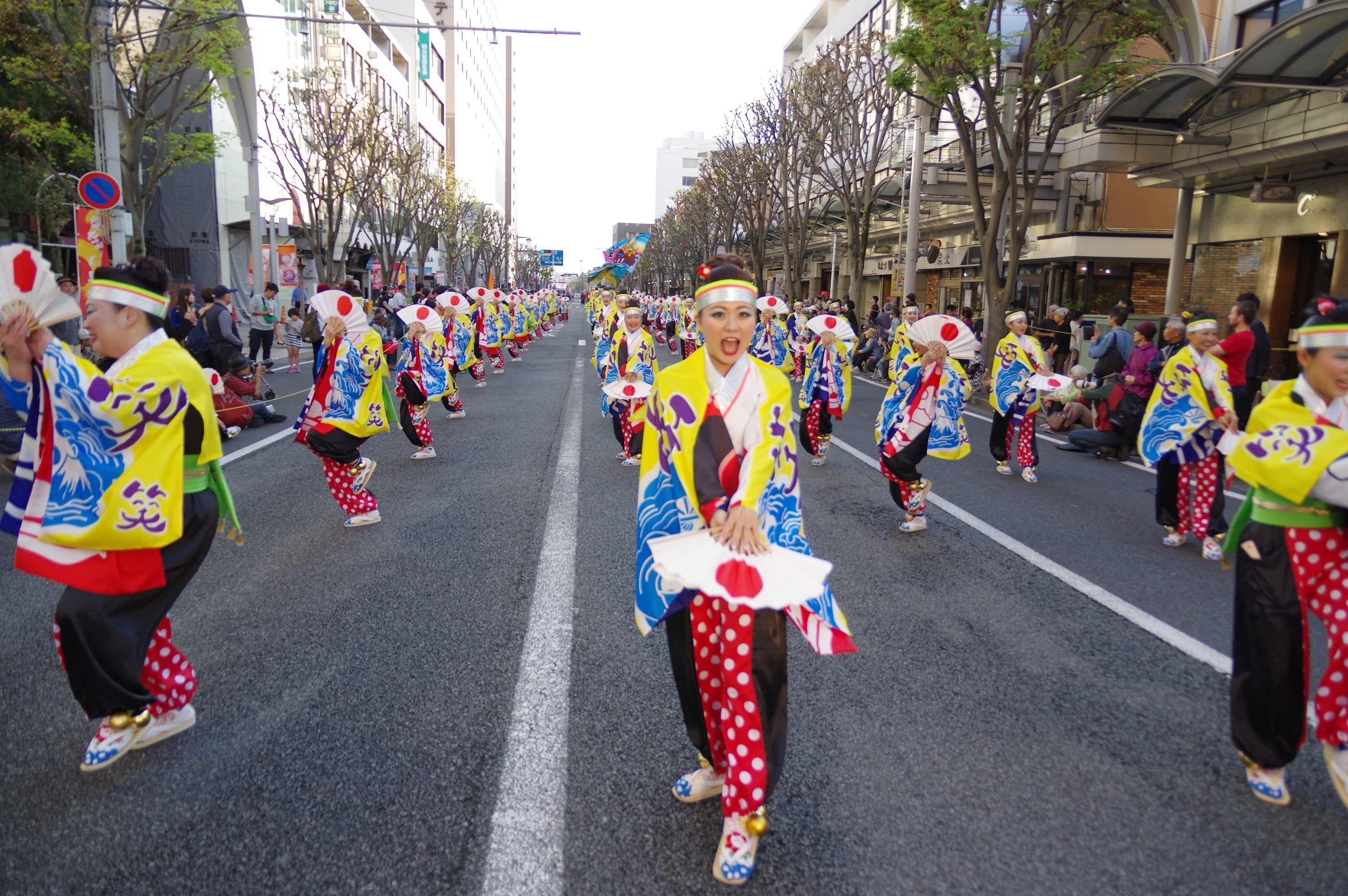毎年11月の2日間、軽快な鳴子の音とカラフルな衣装を身に着けた多くの人々により、沼津に賑わいをもたらしています。そんな光景を沼津市市制100周年を迎えた沼津の秋の祭りとして、これからの100年も続けていきたいと強く感じています。