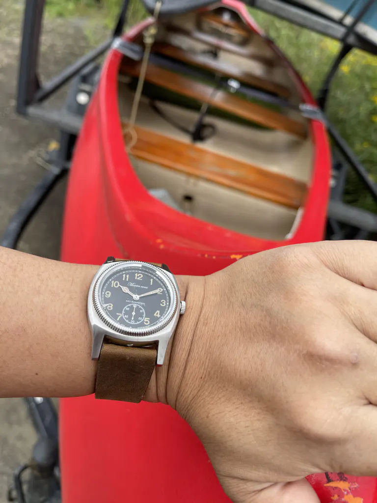 2026/03/04 21:00こんにちは。モントルロロイの宮澤です。いつも弊社プロジェクトをご覧いただきありがとうございます。過去プロジェクトをご支援いただいた皆様、またお気に入り登録してくださっている皆様へ新しいプロジェクトのお知らせです。今回CAMPFIREにて公開したのは「1907年 トレンチ&ドライバーズウォッチ復刻モデル」です。1900年代初頭は、まだ腕時計が一般的ではなく多くの時計は懐中時計でした。その懐中時計にワイヤーラグを取り付け、革ベルトを装着して腕に巻いたものがいわゆる「トレンチウォッチ」です。つまりこの時計は現在の腕時計の原点とも言えるデザインです。今回のモデルでは、1907年頃の時計を参考にしながらアンティークの雰囲気を残しつつ現代でも安心して使える仕様で製作しました。また今回は弊社創立20周年の節目でもあり、CAMPFIREでは特別価格で先行販売しています。もしご興味ありましたらぜひ一度プロジェクトページをご覧いただければ嬉しいです。▼プロジェクトページhttps://camp-fire.jp/projects/836977これからも面白い時計を作っていきたいと思っていますので引き続きどうぞよろしくお願いいたします。モントルロロイ宮澤 もっと見る