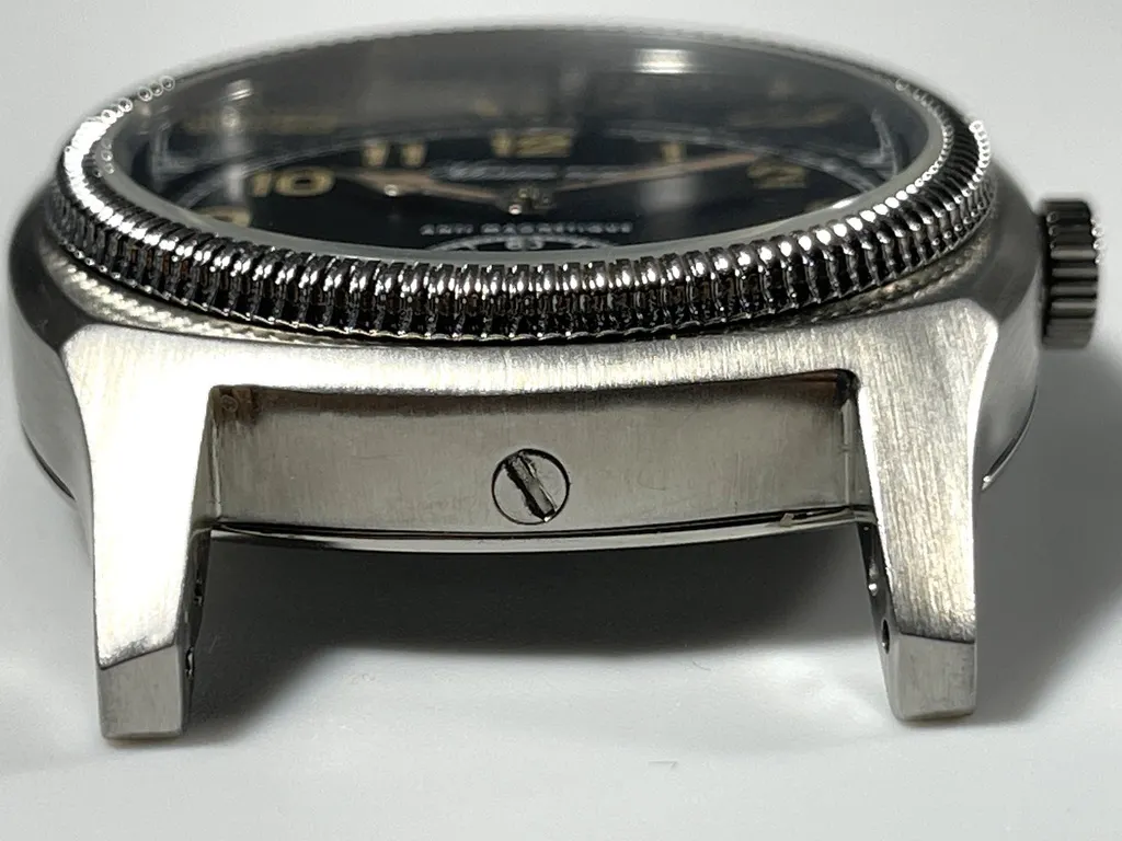 こだわりのクレイジーホースストラップと厚めのナイロンストラップを両方採用するためにラグには2箇所ベルト付け穴があります。これもこだわりの中のこだわりなのです。
