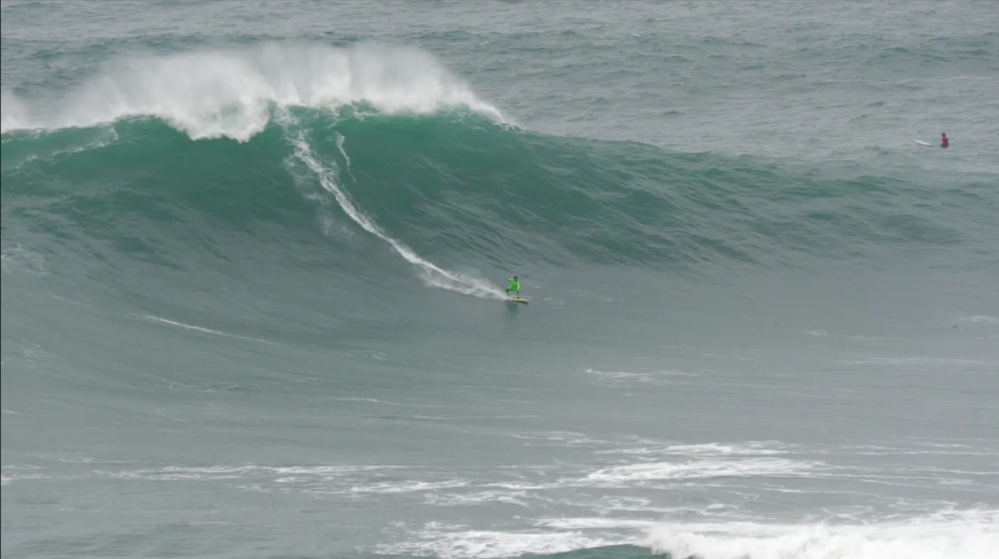 実際にパドルとトーイン両方行い、日本人がナザレに乗った波の中で最大の波に乗りました。