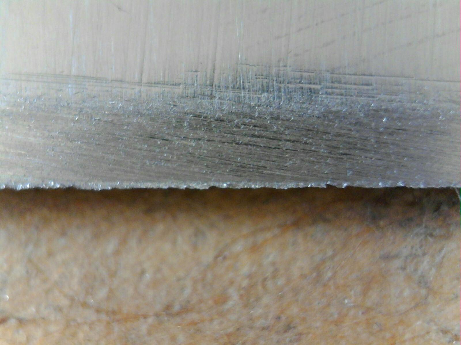参考までにシャープナーと砥石の刃の仕上りの違いを写真でご覧ください。