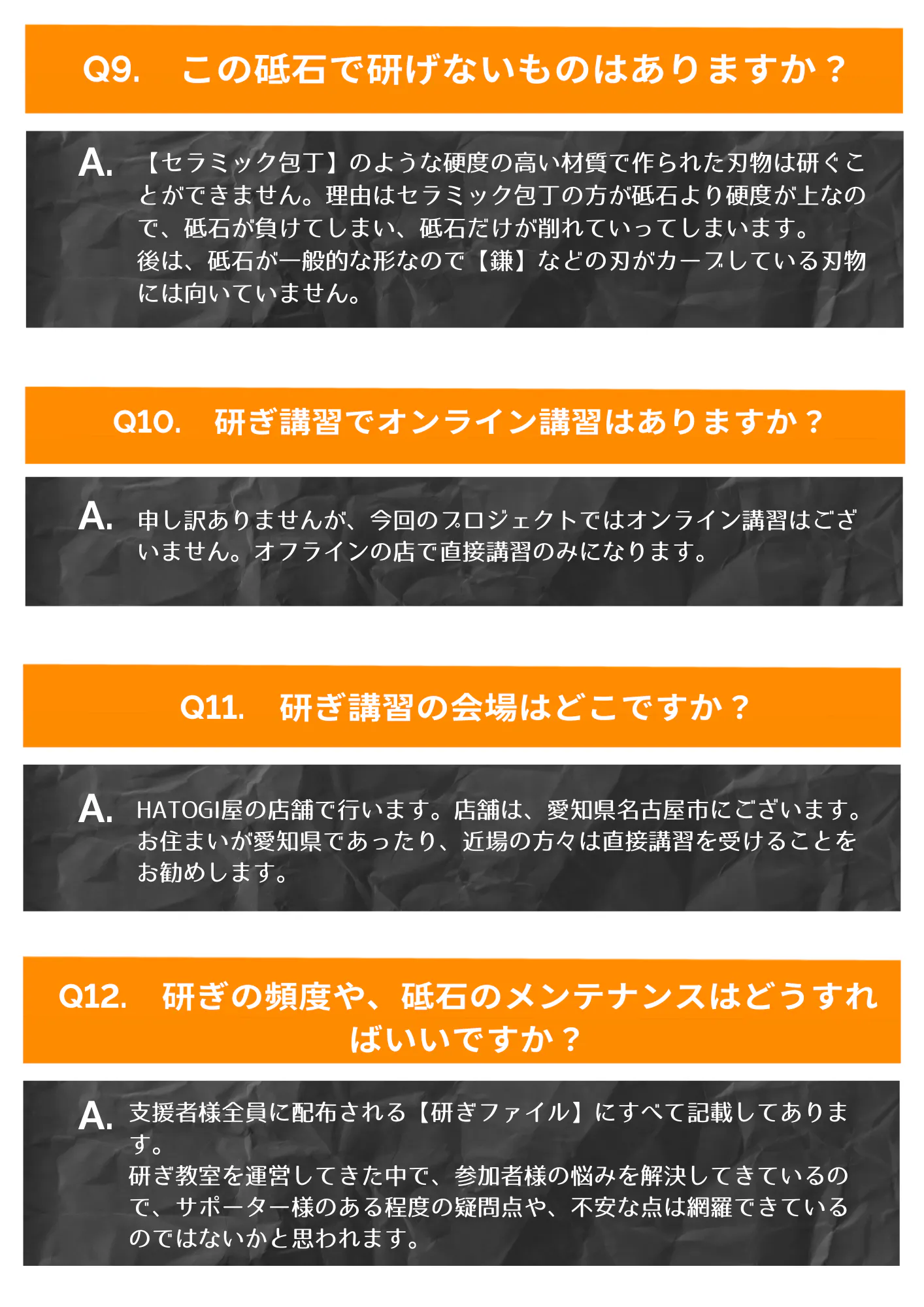 直接教えるプランは数量限定になってしまいますが、研ぎファイルは支援者様全員に差し上げるようになっております。