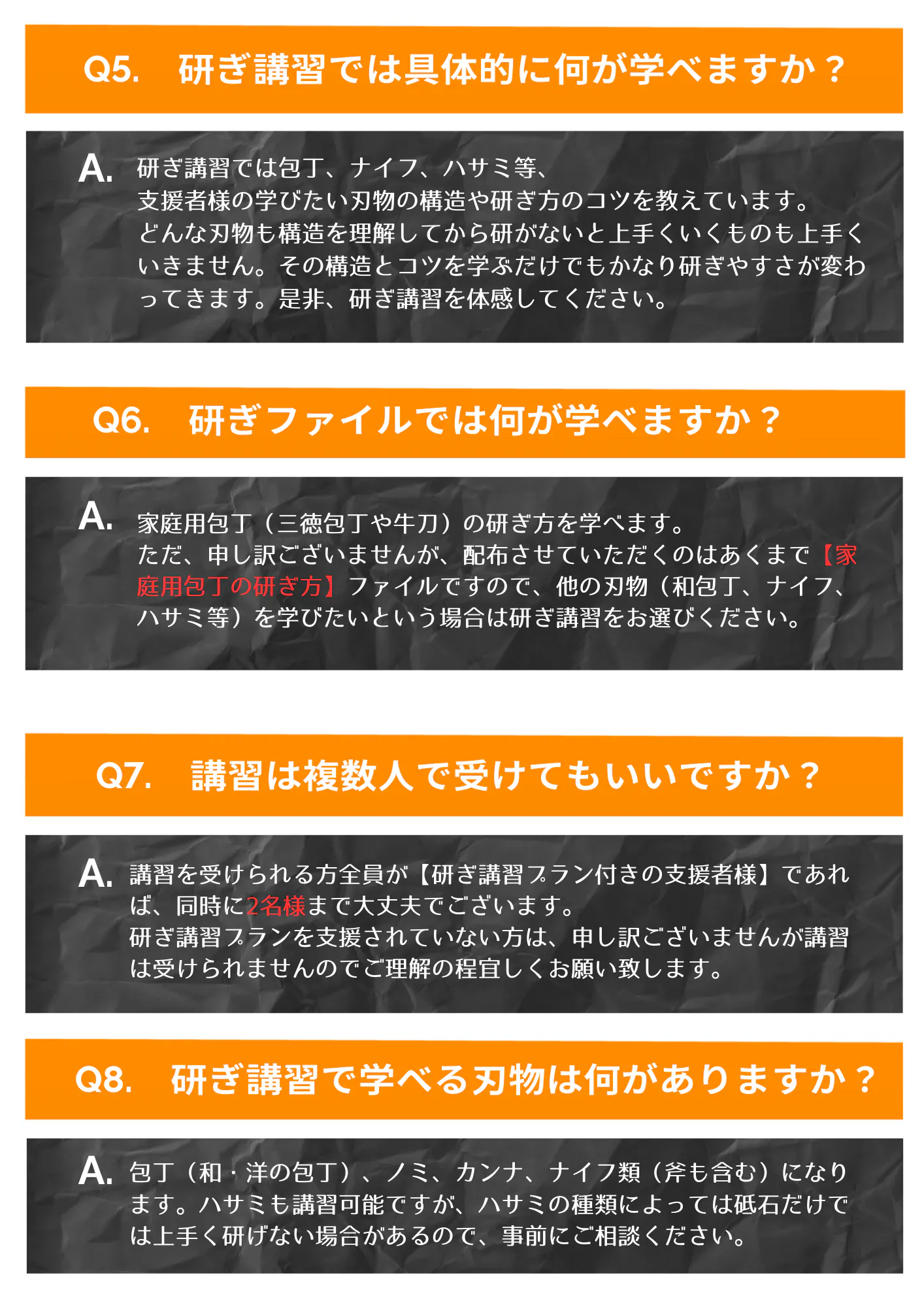 【直接研ぎ方を教える】or【研ぎ方が記載されたPDFファイルを差し上げる】プランがあります。