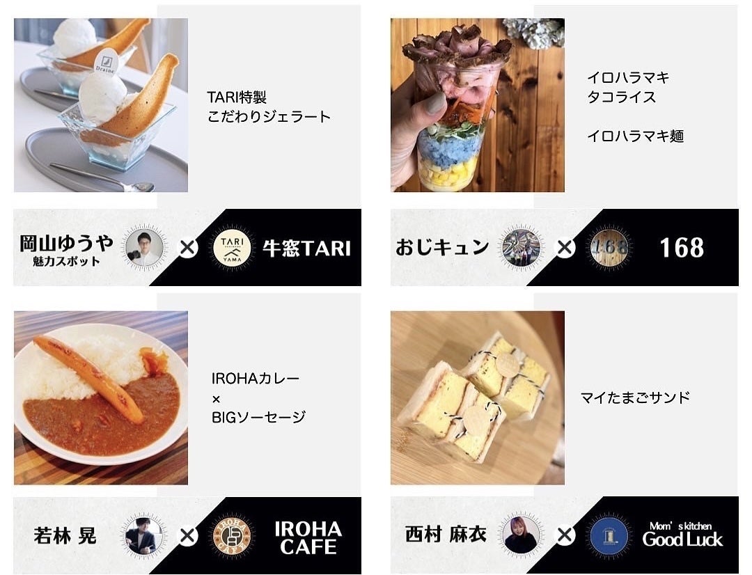 総勢16組の「おかやまインフルエンサーズ」のメンバーが、それぞれが推しの飲食店とコラボをして、イベント限定メニューをプロデュースして皆様に楽しんでもらうグルメイベントです。