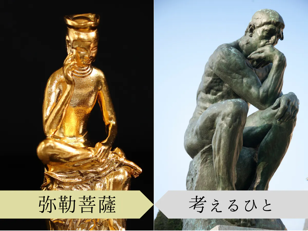 広隆寺の宝冠弥勒は、その姿が「ロダンの考える人」に似ていることから、東洋の詩人という愛称をもちます。