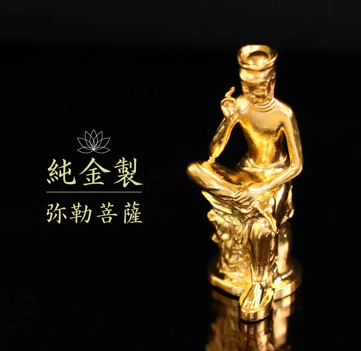 弥勒菩薩(みろくぼさつ)は未来を見つめる。【純金の弥勒菩薩像】が発売中。