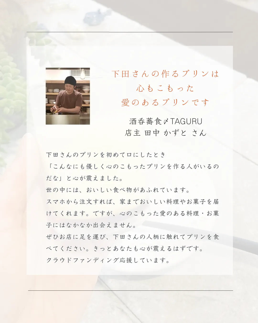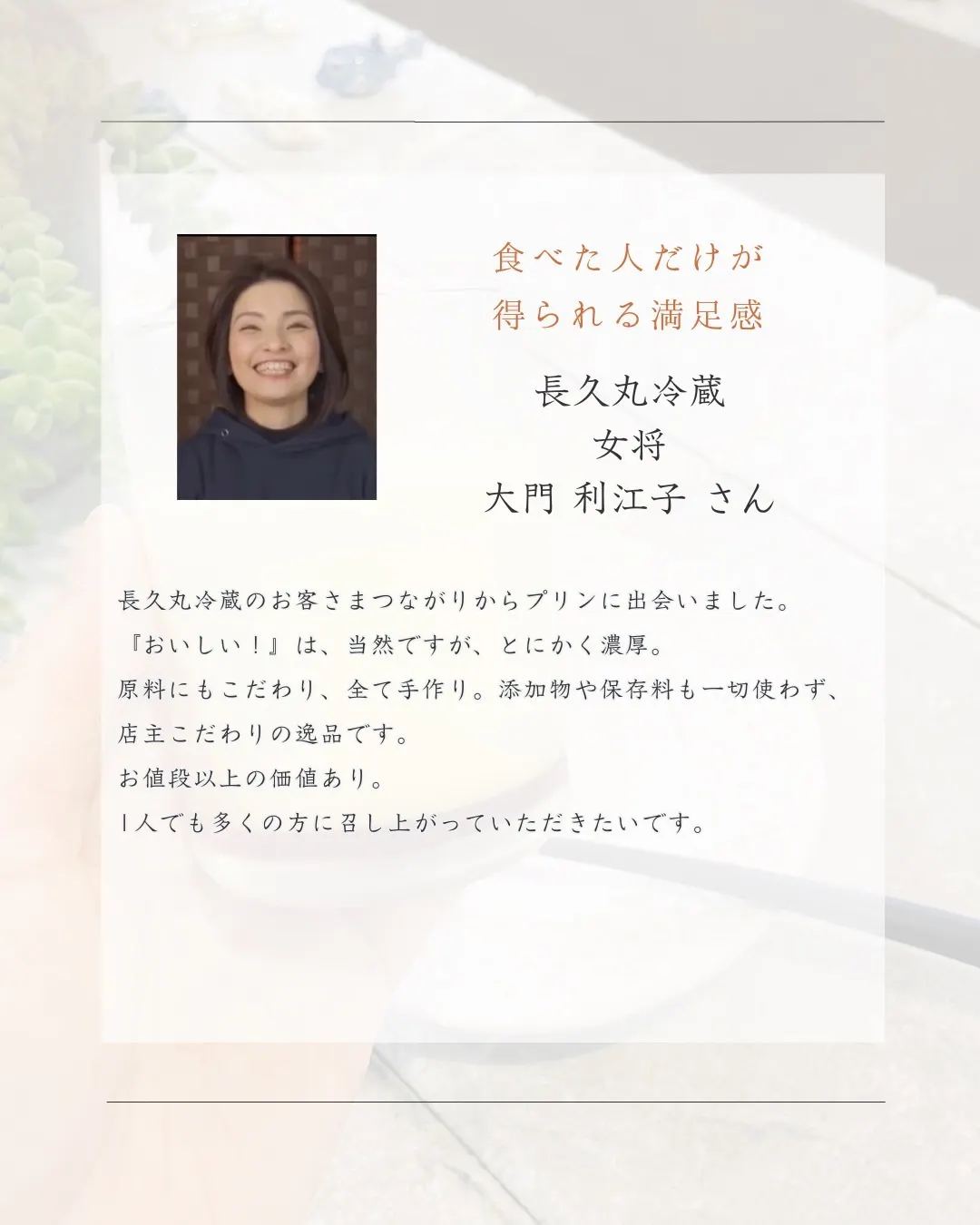 母も大好きだった私が作るこの思い出のプリンを、これからもたくさんの方に楽しんでいただきたいです。