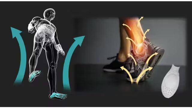 地面反力パワーに着目し、通常歩行時でも「ふくらはぎの筋肉を使った」理想的な安定した歩行を実現するまったく新しい「姿勢サポート」アイテムです。