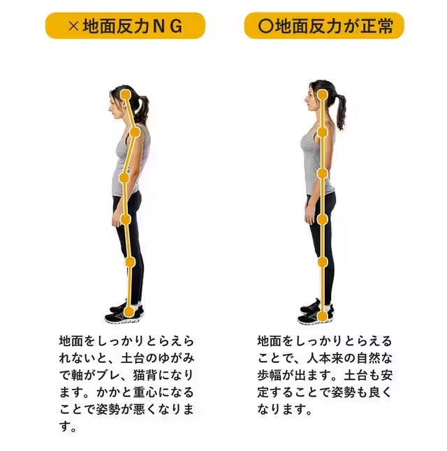 この地面の踏み込みが正常に機能していないと、運動でのパフォーマンスサポートができないといわれています。