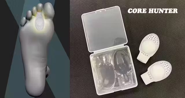 コアハンターは装着することで、足のどの部分に力を入れれば地面を踏み込む力を強化することができるかを明確に知ることができる画期的なアイテムです。