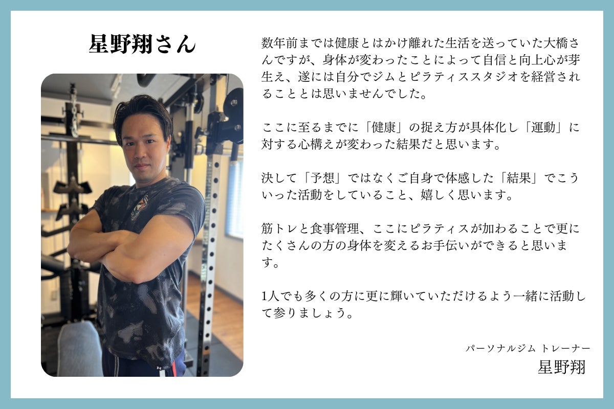 これまで運動習慣のなかった人にも「ピラティスで運動習慣を身に付ける一歩を踏み出しやすい施設」としてボディメイクのハードルを下げていきたいと思っています。