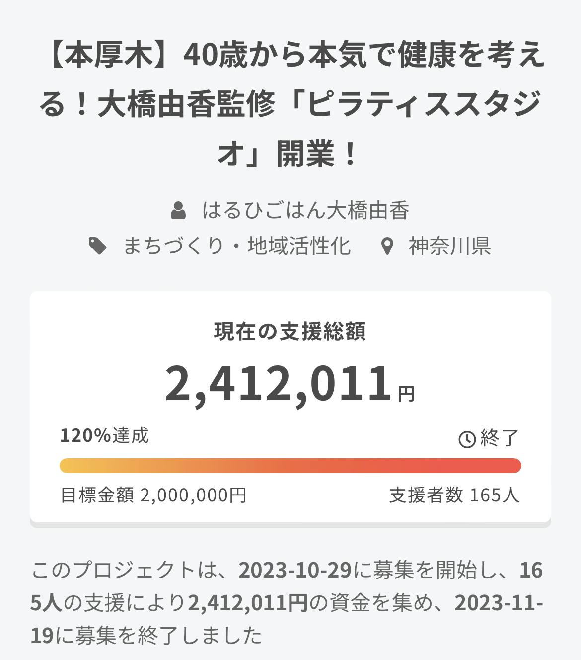 クラウドファンディング終了