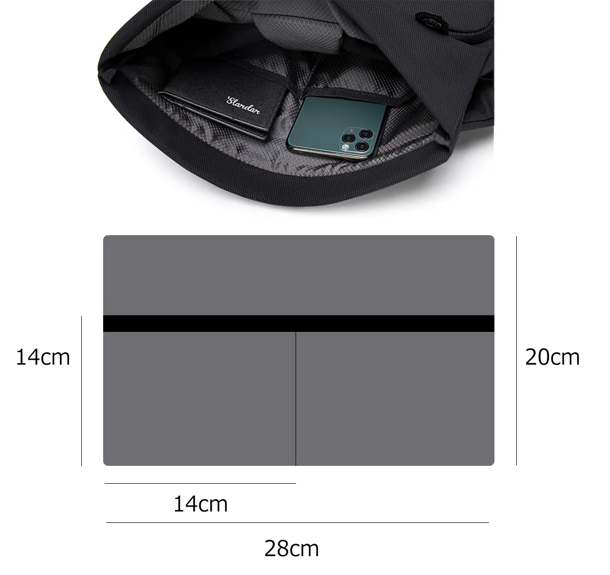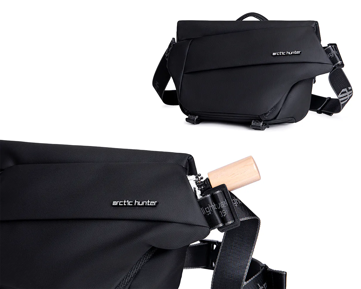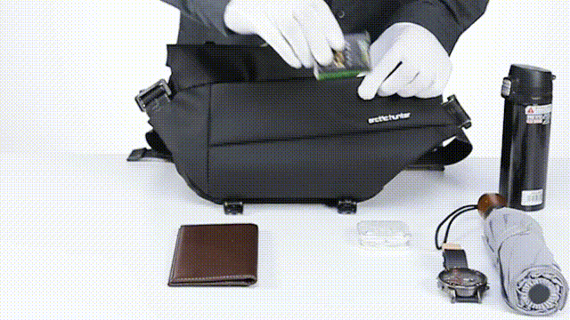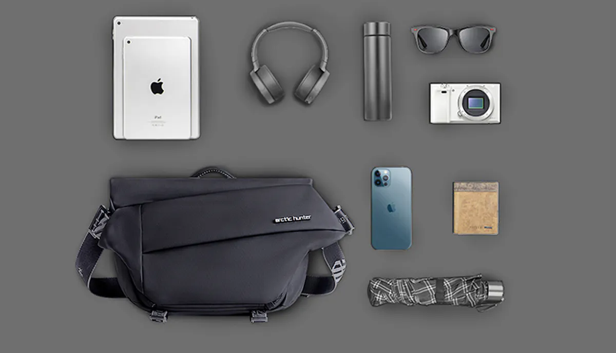 『便利な容量拡張式クロスボディバッグ』は、軽量でコンパクトでありながら一般的なバックパックの収納力を備えているので、普段持ち歩くスマートフォン、財布、折りたたみ傘、マイボトル(水筒)、iPadなどの電子機器、これらをすべて持ち運ぶことができます。