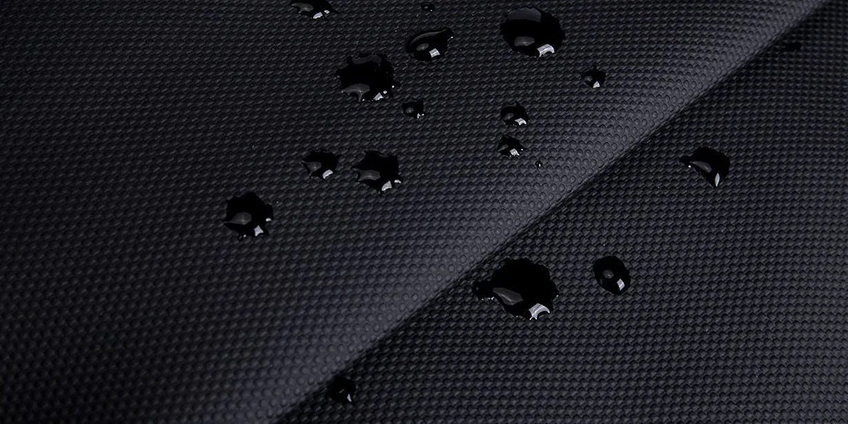 表生地には、高密度の高機能ポリエステル繊維素材を使用し、表面に撥水コーティングを施しているので、雨の日や急な悪天候になった日でも、雨水が内部に侵入するのを防ぎます。また、雨でバッグが濡れてしまってもタオルなどで拭くだけでシミになりにくく、すぐに乾きます。