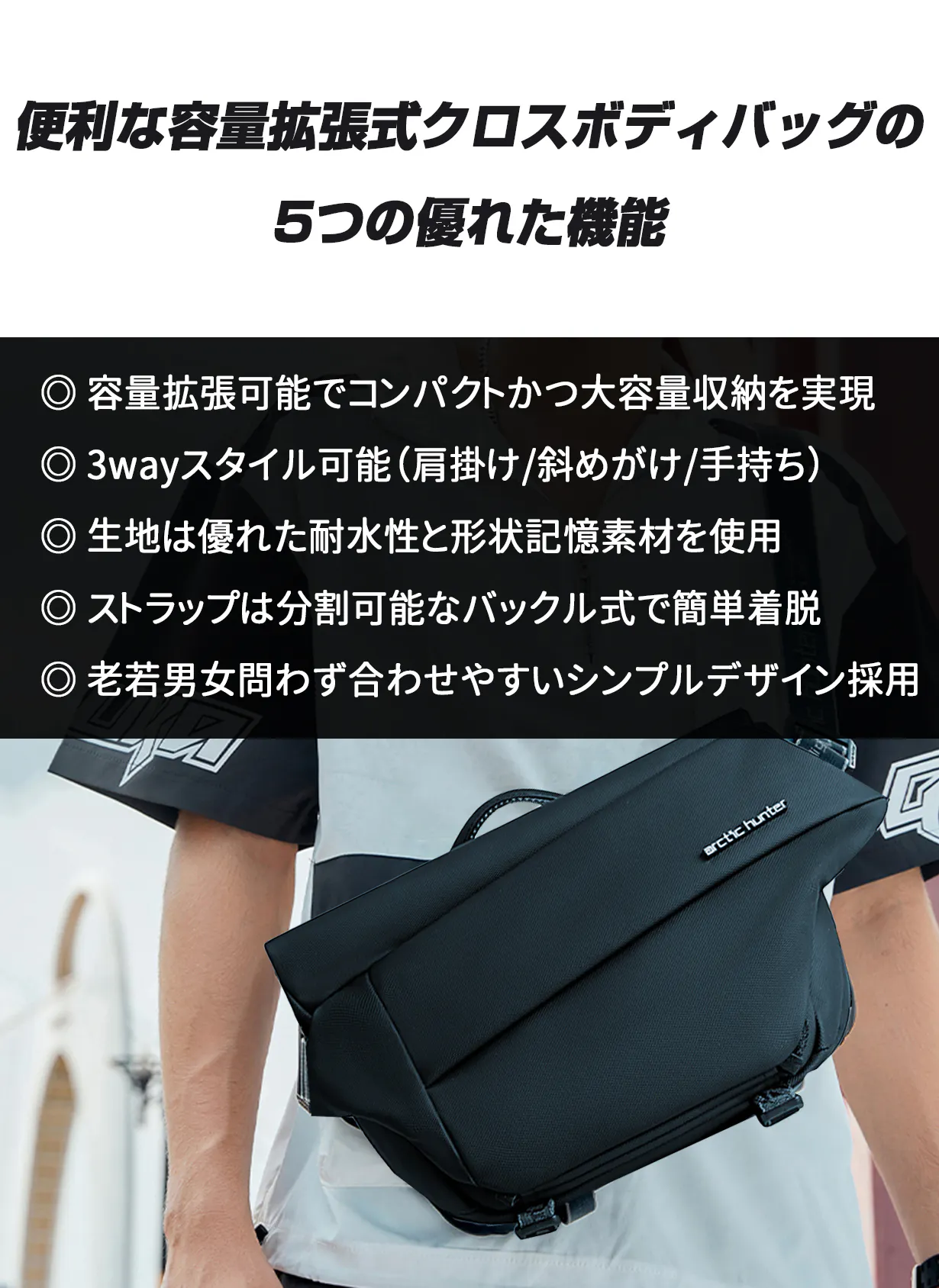 弊社は、この便利な容量拡張式クロスボディバッグ、日本の方々が世界と、物を通じて交流・友好関係を築けたらと思います。