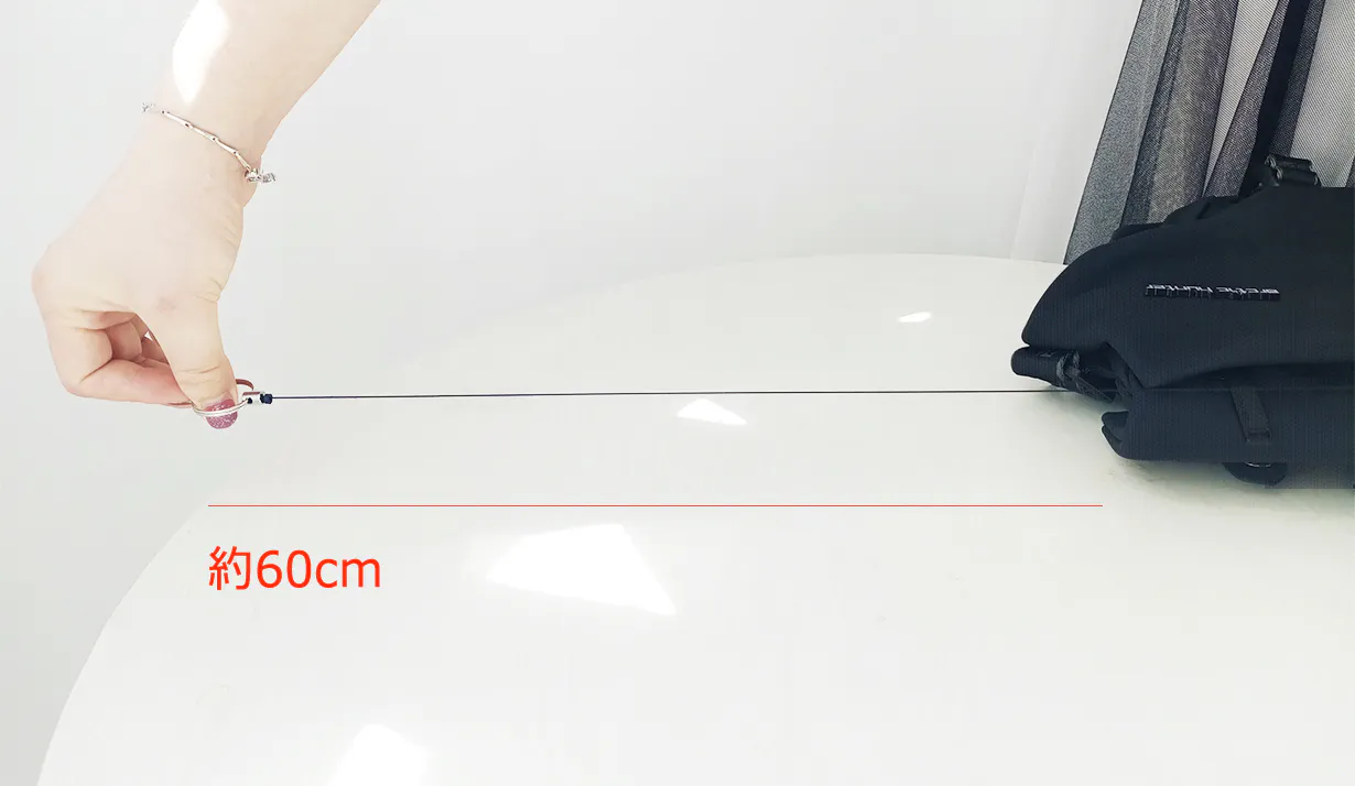 このキーホルダーは長さ約60cmまで伸びるので、鍵がついた状態でキーホルダーを伸ばしそのままドアを開けることができます。また、鍵を使ったあともキーホルダーは元の位置に戻るので、鍵をどこにしまったかわからずバッグの中を探す必要がなくなります。この伸縮キーホルダーはとても便利な機能になります。