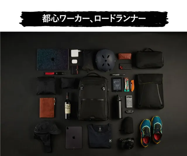 LIMITLESSは、大型ノートパソコン、三脚、自転車用ヘルメット、ボトル(お気に入りの飲料)等を、各々に適した専用区画(撥水・防汚・断熱・機密保護)に難なく収納し、あなたのパートナーとなります。更に隠しポケット、スリング、調節ストラップ、反射アクセサリー等、数々の機能をも搭載。