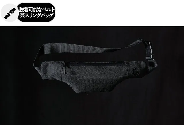 そしてなんと、このベルトにはバッグパックに差し込んでいる部分にポケットがついているので、引き出してスリングバッグとしても使用できます!