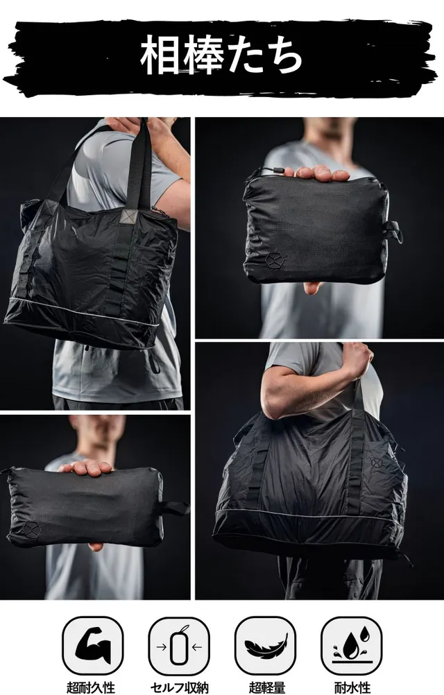 超耐久性、超軽量でセルフ収納、防水、これら機能を備えたトートは、LIMITLESSバックパックの究極の相棒です。