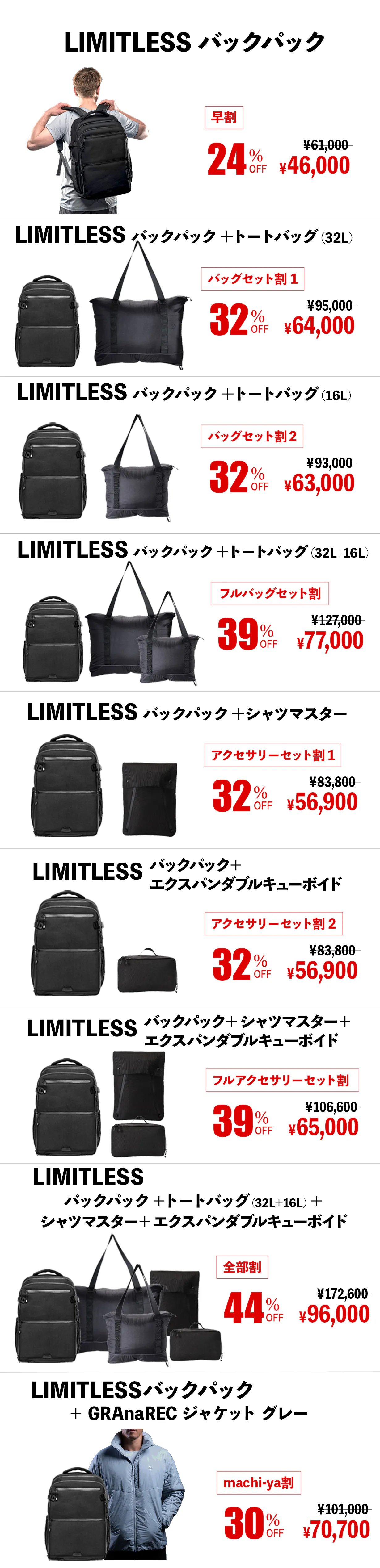 LIMITLESSバックパック合わせて大変お得なリターンとなっております!