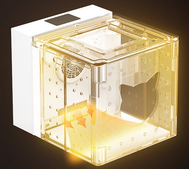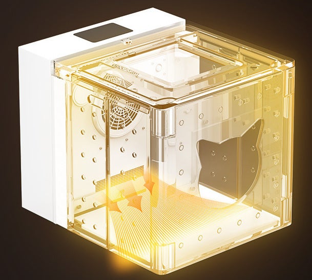 新しい空気を吸い込んで後部の排気口から空気を吐き出し、内部の空気を常にきれいに維持して、わんちゃん・ねこちゃんにストレスをあたえない空間にします。