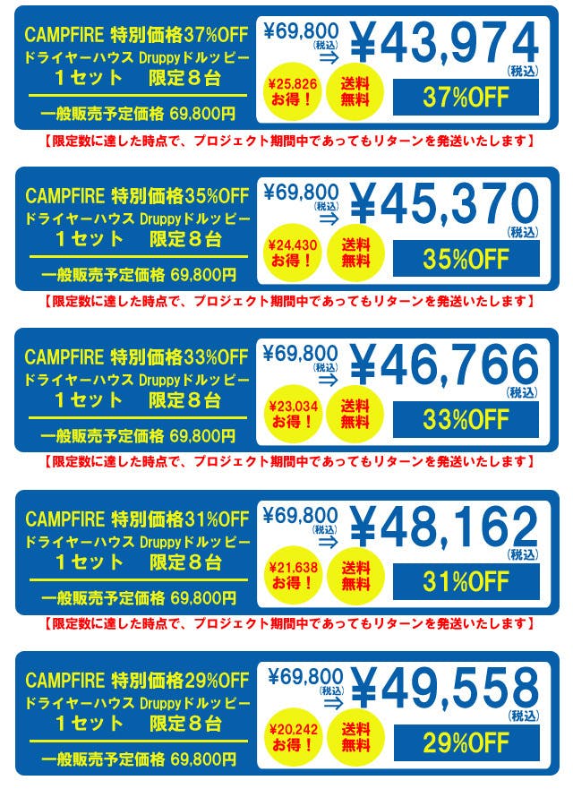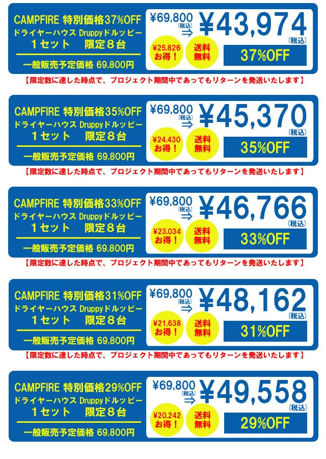 ※想定を上回る皆様からご支援を頂き、量産体制を更に充実させることができた場合、一般販売価格が予定価格を下回る可能性がございます。