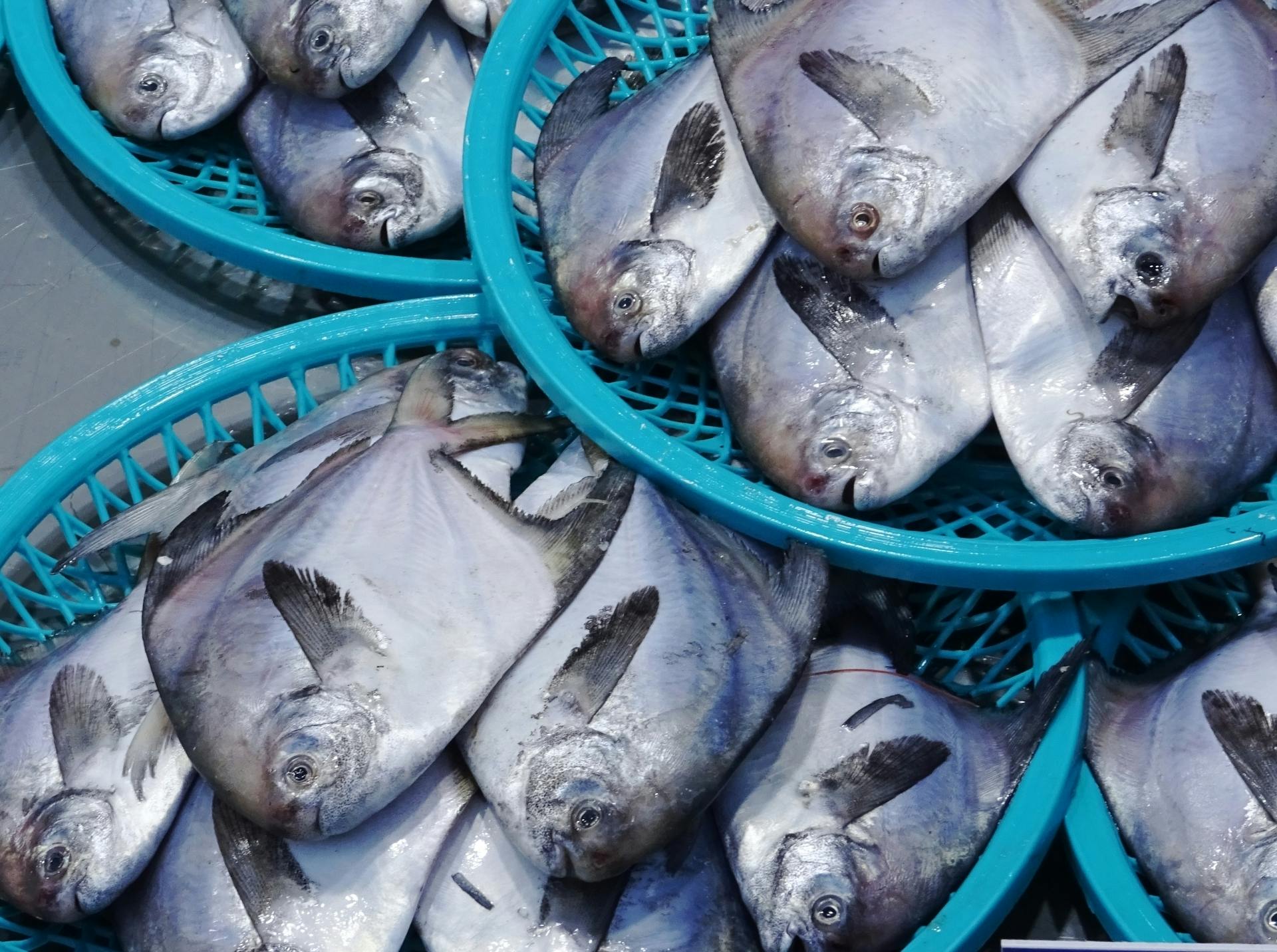 ↑漁獲された左コウイカ(シリヤケイカ)と右マナガツオ