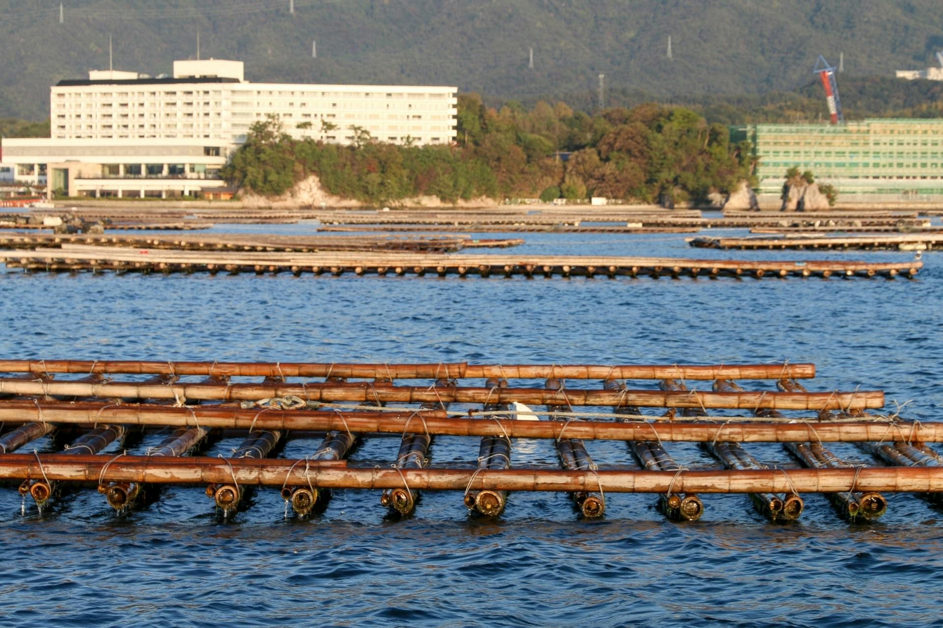 従来では、牡蠣をイカダで吊るして育てる【垂下式】と呼ばれる方法が主流です。