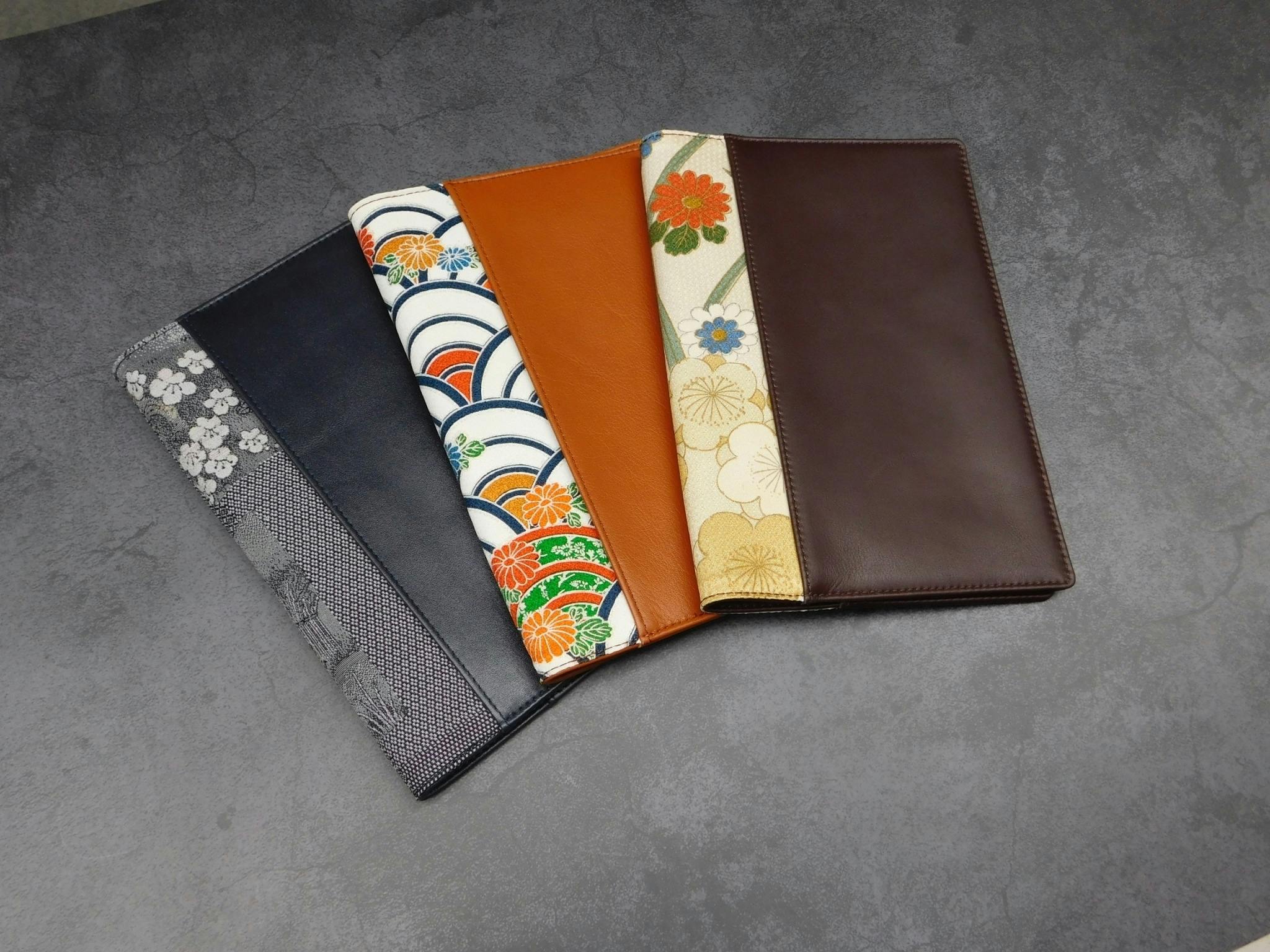 着物地と革が重なる部分はポケットになり、名刺などを挟むことができます。