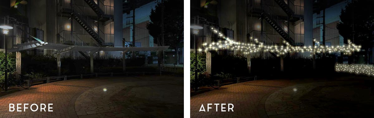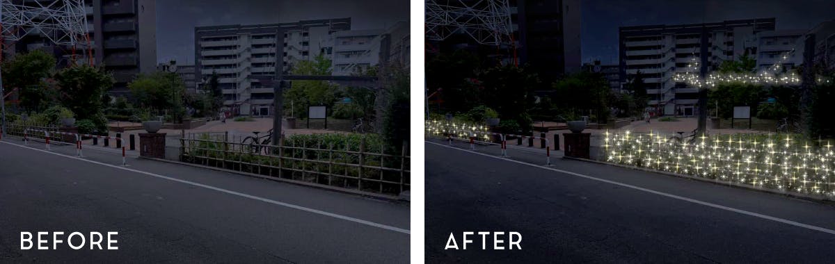 公園の中央に位置する100m続く垣根の両サイドをライトアップしストリートを作りたいと思っています!