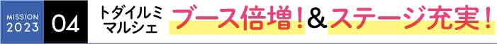 昨年はステージ有りでの開催と無しでの開催があったトダイルミマルシェですが今シーズンは全てのトダイルミマルシェでダンスや音楽などみなさんが参加できるような盛り上がるステージイベントの開催を目指します。