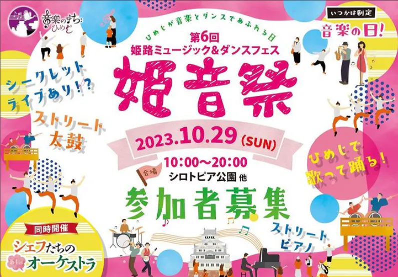 姫路の市民参加型の音楽イベント、ミュージック&ダンスフェス「姫音祭」が今年も10月29日(日)に開催されます!