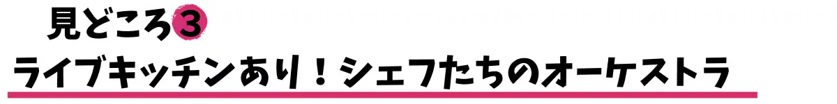 会場にライブキッチンを設営、シェフたちが料理をする様子を生で見られます!