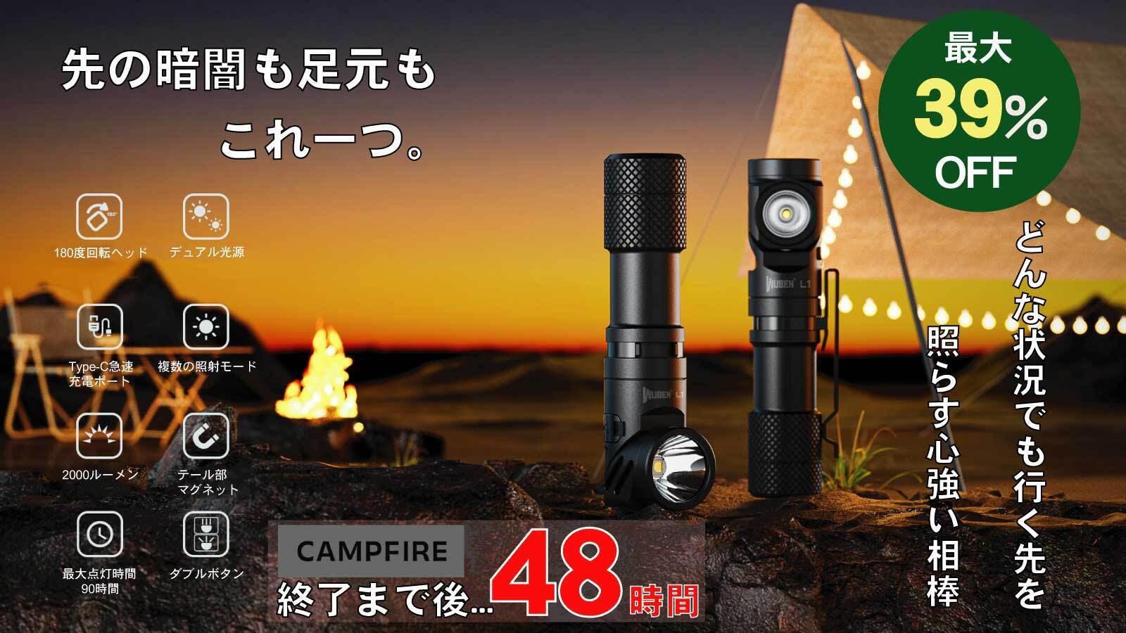 2023/12/30 00:00サポーターの皆さまWUBEN(ウーベン)株式会社です。たくさんのみなさんにプロジェクトをご支援いただき誠にありがとうございます。みなさまの応援ご購入にスタッフ一同とても感謝しています!WUBEN【L1】のプロジェクトも残すところ後48時間となりました!!現在ご検討中の皆さまは、後48時間足らずで終了してしまいますのでお急ぎください!!また、アウトドア・キャンプのお仲間に、もし小型懐中電灯を探している方がいたら紹介&シェアしてくださると嬉しいです。https://camp-fire.jp/projects/view/704783この先行販売期間のお得な機会をぜひお見逃しなく!!引き続きWUBEN(ウーベン)【L1】をよろしくお願いいたします。WUBEN株式会社スタッフ一同 もっと見る