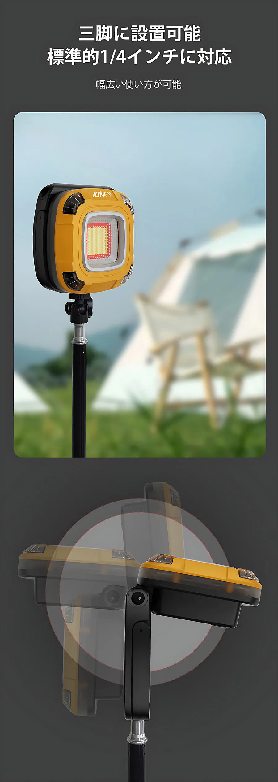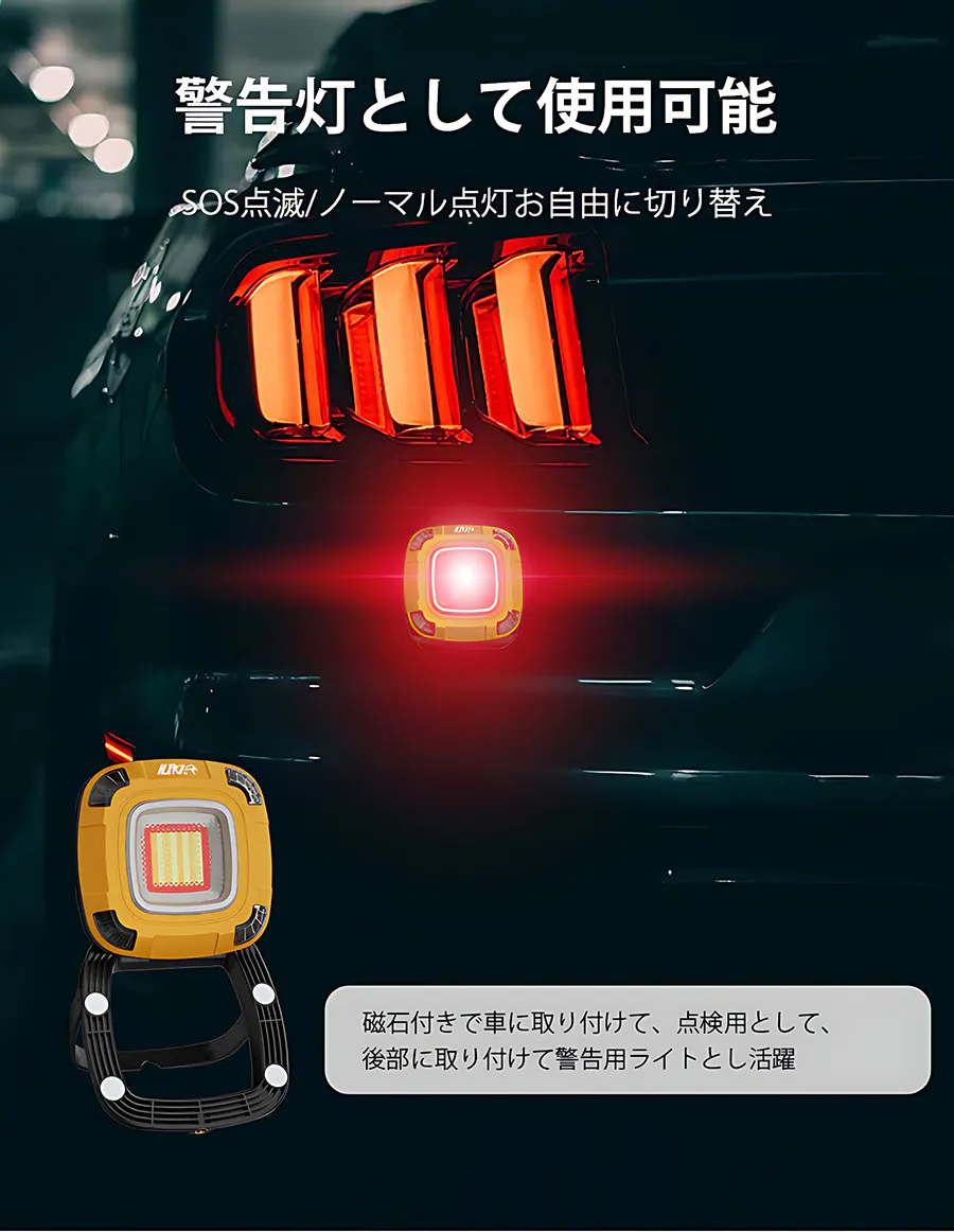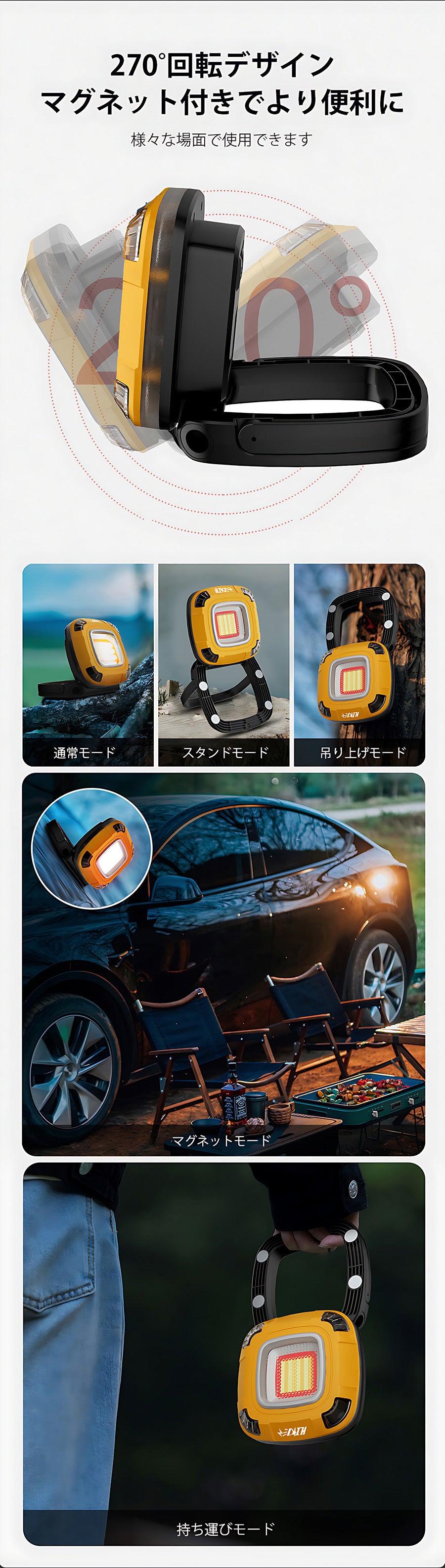 また、ライトの底がマグネットとなっているため、車やスチール壁などに取り付けて使用することもできます。