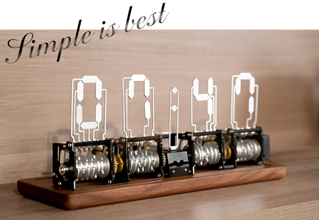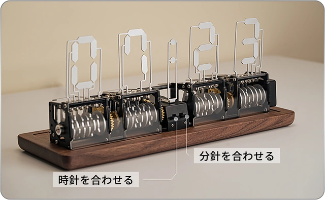 歯車やカムによる機械音と、毎分変わるセグメントで時刻を知らせてくれます。